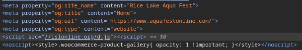 In this incident, the victim visited a website (aquafestonline[.]com) that contained an embedded malicious script. This script fetched a heavily obfuscated external JavaScript file (d.js) from islonline[.]org (see Figure 1).